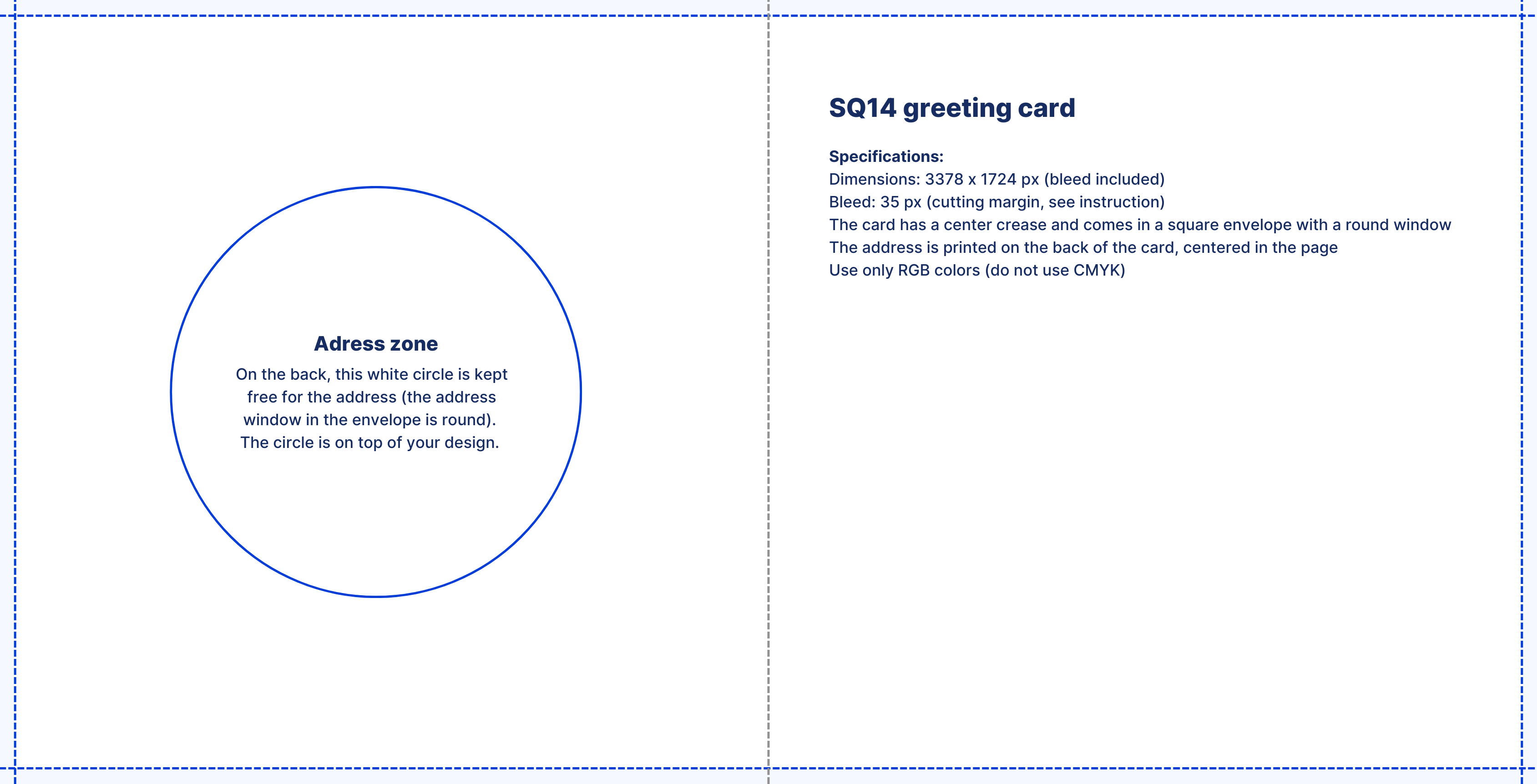 Don't place important text and objects too close to the blue dotted line. Make sure they stay within the safe zone (green line in our editor) so nothing is accidentally cut off.